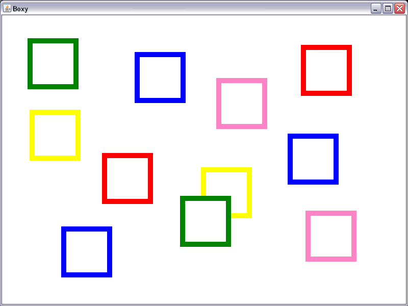 eleven (11) colored boxes on the screen. Each box should be 100 pixels